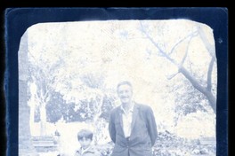 [Hombre y niño en plaza Vergara] [fotografía]. [Viña del Mar, Chile : entre 1960 y 1970]. 1 fotografía : negativo sobre papel ; 9 x 7 cm. .