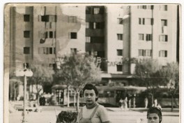 [Joven y niña en bicicleta en la Plaza Baquedano] [fotografía]. Santiago : [entre 1930 y 1950]. 1 fotografía : monocromo, gelatina sobre papel fibra ; 14 x 9 cm. .
