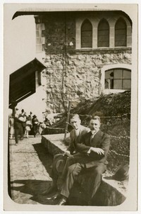 [Hombres sentados cerca de construcción de piedra] [fotografía]. [Santiago?] : Casa Hans Frey, [entre 1920 y 1930]. 1 fotografía : monocromo, gelatina sobre papel fibra ; 13 x 9 cm. .