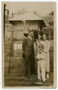 [Familia delante de jaula de avestruz] [fotografía]. [Santiago?] : 1937. 1 fotografía : monocromo, gelatina sobre papel fibra ; 14 x 9 cm. .