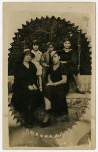 [Mujeres y niños en Cerro San Cristóbal] [fotografía]. Santiago : 1933. 1 fotografía : monocromo, gelatina sobre papel fibra ; 14 x 9 cm. .