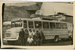 Grupo de personas adultas aparecen en la fotografía al lado de una micro del recorrido Av. Matta. De fondo, la estructura de una construcción de cemento.