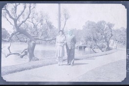 Mujer y hombre aparecen retratados próximos a la laguna, presumiblemente de la Quinta Normal.