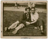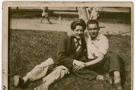 [Dos hombres en la Quinta Normal] [fotografía]. [Santiago? : entre 1920 y 1930]. 1 fotografía : monocromo, gelatina sobre papel fibra ; 7 x 9 cm. .