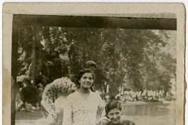 [Mujer con niña de meses en los brazos y junto a una joven en la Quinta Normal] [fotografía]. [Santiago? : entre 1920 y 1930]. 1 fotografía : monocromo, gelatina sobre papel fibra ; 9 x 7 cm. .