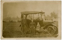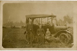 [Mujer, hombre y niño al exterior de un automóvil] [fotografía]. [Chile : entre 1910 y 1920]. 1 fotografía : monocromo, gelatina sobre papel fibra ; 9 x 14 cm. .