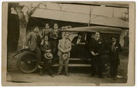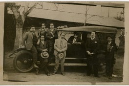 [Grupo de hombres al interior, en el capó y alrededor de un automóvil] [fotografía]. [Chile] : Casa Losada, 1929. 1 fotografía : monocromo, gelatina sobre papel fibra ; 9 x 14 cm. .