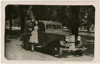 [Mujer y hombre fuera de un automóvil] [fotografía]. [Chile : entre 1920 y 1930]. 1 fotografía : monocromo, gelatina sobre papel fibra ; 9 x 14 cm. .