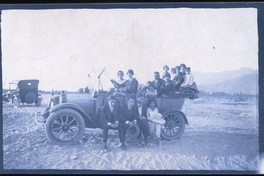 [Grupo de personas al interior y en la pisadera de un automóvil] [fotografía]. [Chile : entre 1910 y 1930]. 1 fotografía : negativo sobre papel ; 9 x 14 cm. .