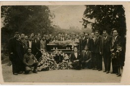 [Grupo de personas junto a féretro] [fotografía]. [Chile : entre 1930 y 1950]. 1 fotografía : monocromo, gelatina sobre papel fibra ; 9 x 14 cm. .
