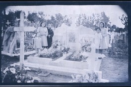 [Mujeres y niñas alrededor de dos tumbas] [fotografía]. [Chile] : 1944. 1 fotografía : negativo sobre papel ; 9 x 14 cm. .