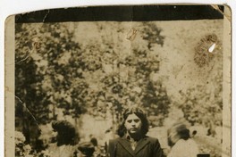 [Mujer detrás de tumbas] [fotografía]. [Chile : entre 1950 y 1960]. 1 fotografía : monocromo, gelatina sobre papel fibra ; 13 x 9 cm. .