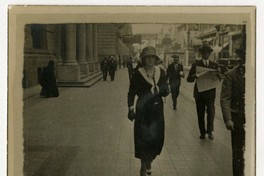 [Personas caminan por calle Ahumada] [fotografía]. [Santiago : entre 1920 y 1930]. 1 fotografía : monocromo, gelatina sobre papel fibra ; 14 x 9 cm. .