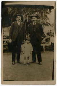 [Hombres y niña un 18 de septiembre] [fotografía]. [Santiago?] : 1925. 1 fotografía : monocromo, gelatina sobre papel fibra ; 13 x 9 cm. .