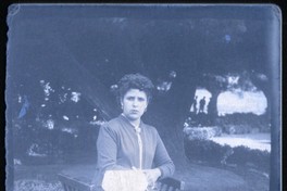 [Mujer sentada en una banca de una plaza] [fotografía]. [Chile : entre 1920 y 1930]. 1 fotografía : monocromo, gelatina sobre papel fibra ; 9 x 7 cm. .