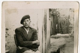 [Hombre con boina sentado en una silla de mimbre] [fotografía]. [Chile : entre 1920 y 1930]. 1 fotografía : monocromo, gelatina sobre papel fibra ; 9 x 7 cm. .