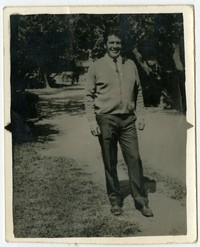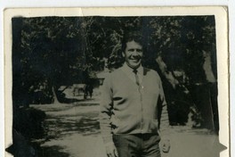 [Médico en el jardín de un hospital] [fotografía]. [Chile : entre 1940 y 1960]. 1 fotografía : monocromo, gelatina sobre papel fibra ; 9 x 7 cm. .