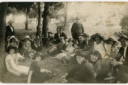[Grupo de mujeres y hombres en un parque] [fotografía] / [Fotografía de Francisco Bley]. [Chile : entre 1910 y 1920]. 1 fotografía : monocromo, gelatina sobre papel fibra ; 9 x 14 cm. .