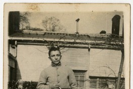 [Militar fumando en un patio] [fotografía]. [Chile : entre 1930 y 1949]. 1 fotografía : monocromo, gelatina sobre papel fibra ; 14 x 9 cm .