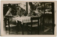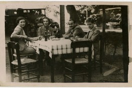[Personas sentadas en una mesa al aire libre en Peñaflor] [fotografía]. Santiago : 1936. 1 fotografía : monocromo, gelatina sobre papel fibra ; 9 x 14 cm. .