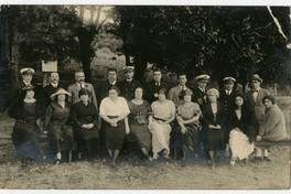 [Grupo de civiles y de la Aviación junto a sus esposas] [fotografía]. [Chile : entre 1910 y 1920]. 1 fotografía : monocromo, gelatina sobre papel fibra ; 9 x 14 cm. .