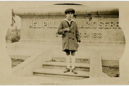 Niño de ocho años con boina y abrigo, aparece en la fotografía de pie en la escalinata de Monumento; cuya sola base fue fotografiada, y donde se lee: "Melipilla a Ignacio Serrano. 2[...] de 1913".