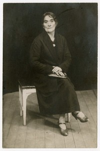 [Mujer mayor sentada en una banca] [fotografía]. [Chile : entre 1930 y 1940]. 1 fotografía : monocromo, gelatina sobre papel fibra ; 13 x 9 cm .
