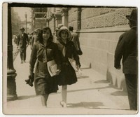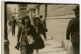 [Estudiantes caminando por calle céntrica] [fotografía]. [Santiago : entre 1920 y 1930]. 1 fotografía : monocromo, gelatina sobre papel fibra ; 7 x 9 cm .