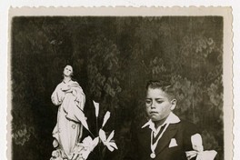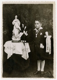 Jenaro David Peña en su Primera Comunión [fotografía]. [Chile] : 1946. 1 fotografía : monocromo, gelatina sobre papel fibra ; 12 x 9 cm .