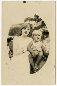 [Mujer y niña en brazos] [fotografía]. [Chile : entre 1920 y 1930]. 1 fotografía : monocromo, gelatina sobre papel fibra ; 14 x 9 cm .