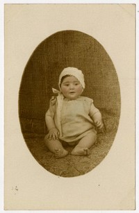 [Bebé con gorro] [fotografía]. [Chile : entre 1930 y 1940]. 1 fotografía : monocromo, gelatina sobre papel fibra ; 14 x 9 cm. .