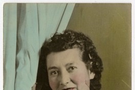 [Mujer afirmada de una cortina] [fotografía]. [Chile : entre 1940 y 1950]. 1 fotografía : monocromo, gelatina sobre papel fibra ; 14 x 9 cm .