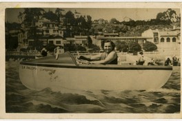 [Mujer detrás de bote pintado en telón de fondo] [fotografía]. Cartagena : [entre 1940 y 1950]. 1 fotografía : monocromo, gelatina sobre papel fibra ; 9 x 14 cm .
