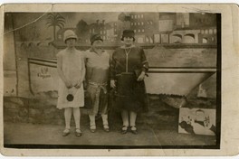 [Tres mujeres delante de telón de fondo] [fotografía]. [Chile : entre 1920 y 1930]. 1 fotografía : monocromo, gelatina sobre papel fibra ; 9 x 14 cm .