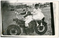 [Niños en una motocicleta indian] [fotografía]. [Chile : entre 1960 y 1970]. 1 fotografía : monocromo, gelatina sobre papel fibra ; 9 x 14 cm .