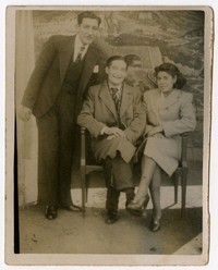 [Personas delante de telón de fondo] [fotografía]. [Chile : 194-?] 1 fotografía : monocromo, gelatina sobre papel fibra ; 9 x 7 cm .