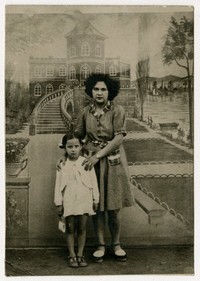 [Mujer y niña delante de telón de fondo] [fotografía]. [Chile? : entre 1950 y 1960]. 1 fotografía : monocromo, gelatina sobre papel fibra ; 9 x 6 cm .