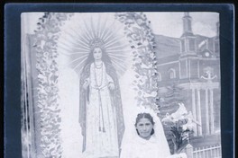 Rosa Vasquez T.en su Primera Comunión [fotografía]. [Chile], 1955. 1 fotografía : monocromo, gelatina sobre papel fibra ; 9 x 7 cm .
