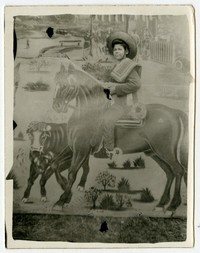 [Niño sobre poni pintado en telón de fondo] [fotografía]. [Chile : entre 1940 y 1950]. 1 fotografía : monocromo, gelatina sobre papel fibra ; 9 x 7 cm .