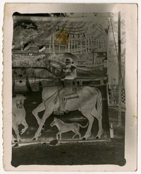 [Niño sobre caballo pintado en telón] [fotografía]. [Chile : entre 1940 y 1950]. 1 fotografía : negativo sobre papel ; 9 x 7 cm .