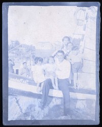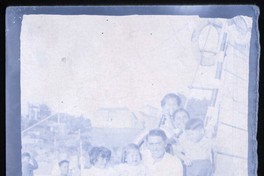 [Hombre junto a niños en bote] [fotografía]. [Chile : entre 1940 y 1950]. 1 fotografía : negativo sobre papel ; 9 x 7 cm .