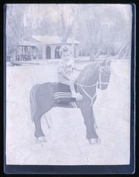 [Niño sobre poni pintado] [fotografía]. [Chile : entre 1950 y 1960]. 1 fotografía : negativo sobre papel ; 9 x 7 cm .