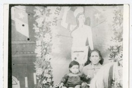 [Mujer junto a niña en poni de utilería] [fotografía]. [Chile : entre 1950 y 1960]. 1 fotografía : monocromo, gelatina sobre papel fibra ; 14 x 9 cm .