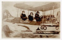 [Mujeres detrás de avioneta pintada en telón de fondo] [fotografía]. [Chile : entre 1930 y 1940]. 1 fotografía : monocromo, gelatina sobre papel fibra ; 10 x 15 cm .