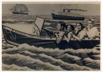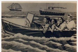 [Mujeres y jóvenes detrás de bote pintado en telón de fondo] [fotografía]. [Chile : entre 1940 y 1950]. 1 fotografía : monocromo, gelatina sobre papel fibra ; 9 x 13 cm .