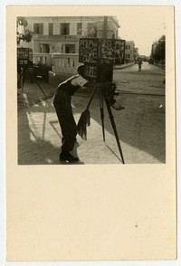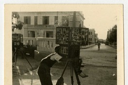 [Fotógrafo minutero tomando una fotografía] [fotografía]. [Chile : entre 1940 y 1950]. 1 fotografía : monocromo, gelatnina sobre papel fibra ; 9 x 6 cm .