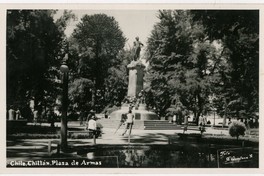 En extremo inferior izquierdo de la fotografía se lee: Chile, Chillán, Plaza de Armas. Foto A. Quintana G.