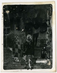 [Niño delante de imagen de San Sebastián pintada en telón de fondo] [fotografía]. [Chile : entre 1940 y 1950]. 1 fotografía : negativo sobre papel ; 9 x 7 cm .