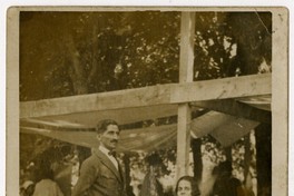 [Mujer y hombre al aire liibre] [fotografía]. [Chile] : 1927. 1 fotografía : monocromo, gelatina sobre papel fibra ; 14 x 9 cm .
