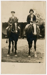 [Mujer y adolescente montados a caballo] [fotografía]. [Chile : entre 1920 y 1930]. 1 fotografía : monocromo, gelatina sobre papel fibra ; 14 x 9 cm .